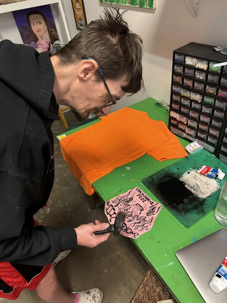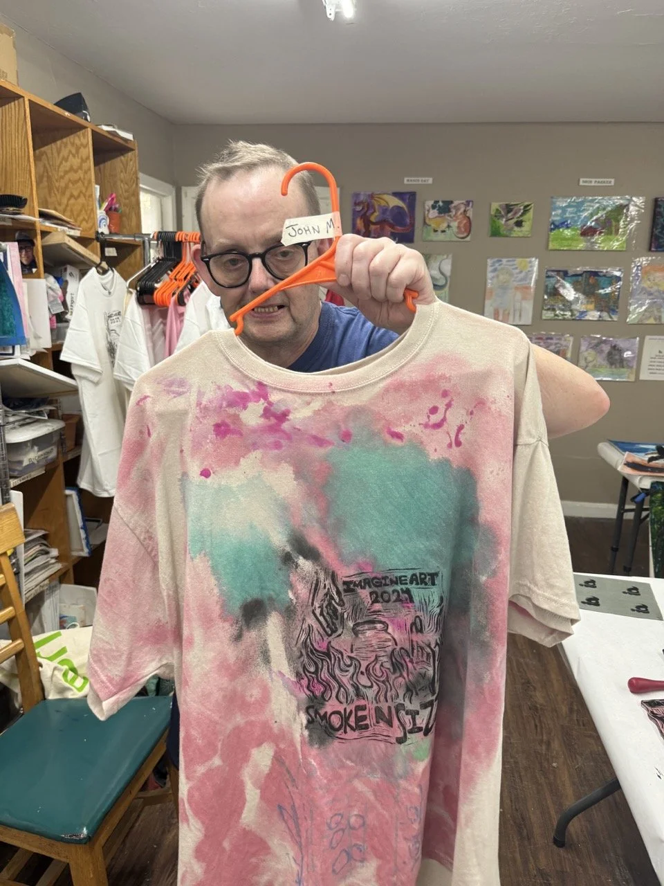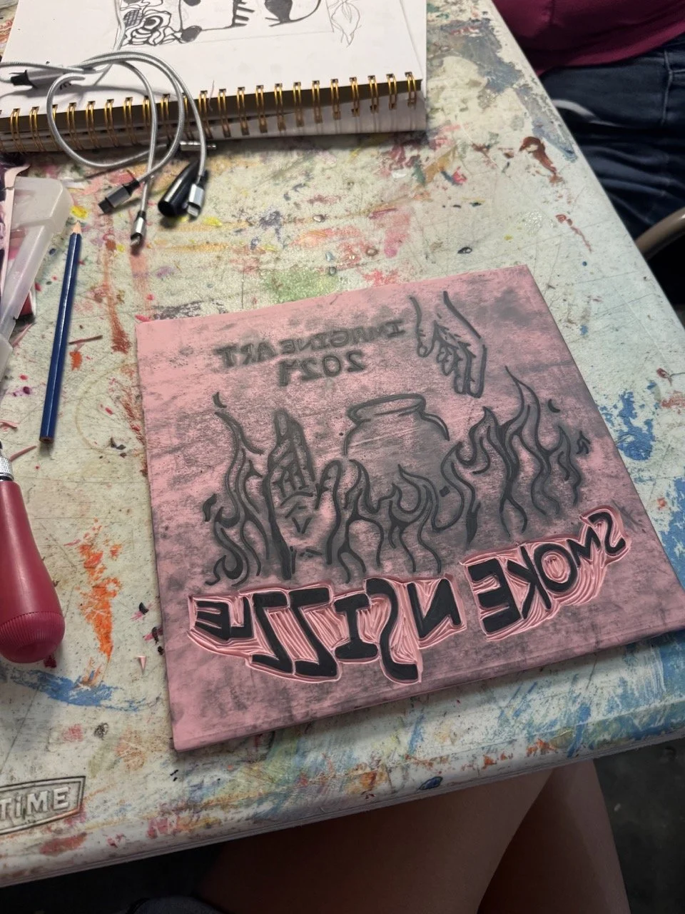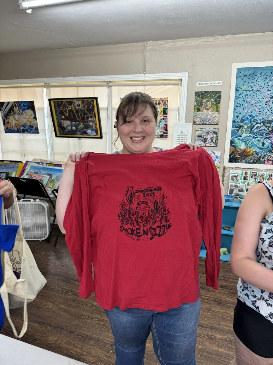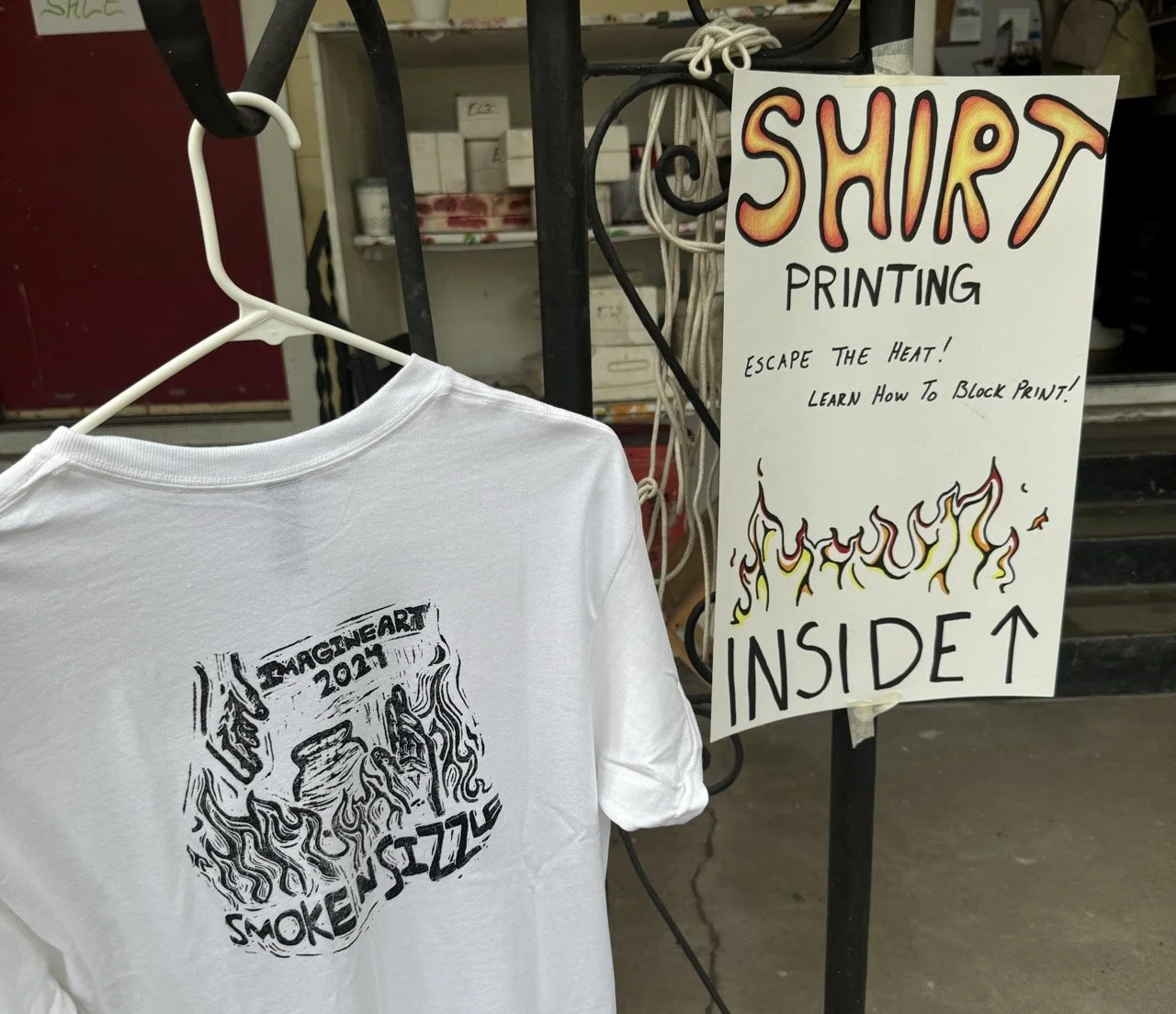 I devised and facilitated a block printing workshop at Imagine Art. This workshop was for Imagine Art artists as well as the public. I designed and carved a design for participants to use. During the workshop I led participants through the block-printing process and they got to go home with their very own block-printed t-shirt.