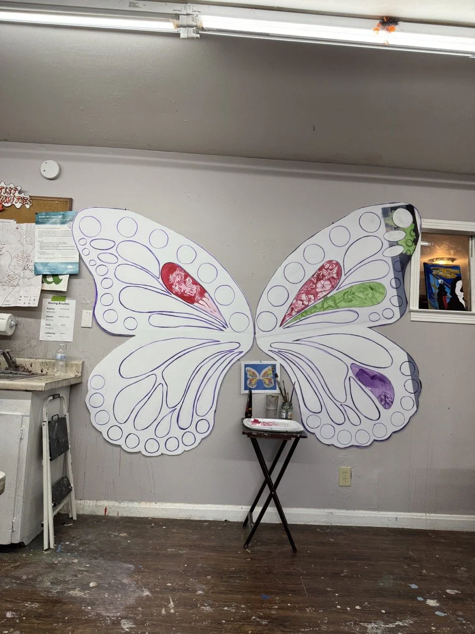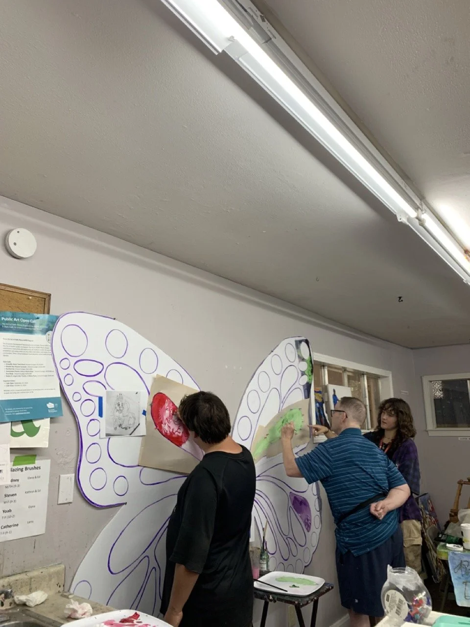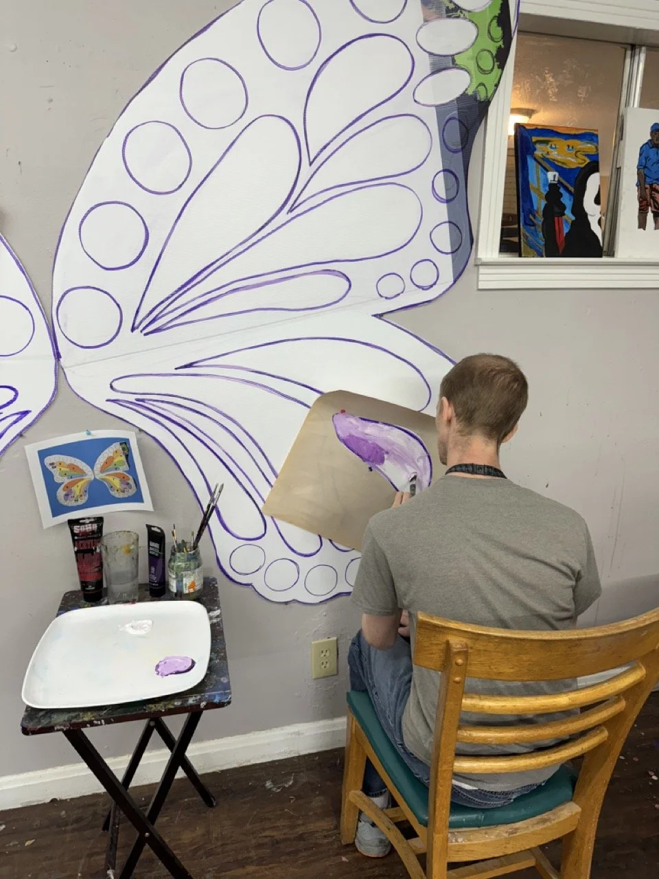 I designed and facilitated a collaborative mural for Imagine Art’s 2024 Austin Studio Tour. Imagine Art is a non-profit with a fine arts program that supports artists with disabilities. I lead 20 of these artists through the creative process by providing instruction and direction to ensure a cohesive and visually impactful result.